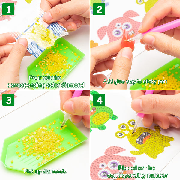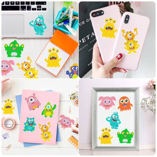 FUNNY HANDMADE GIFTS – Designed with cute and various monster patterns, you can use the diamond painting tools to paste the diamonds to their corresponding numbered positions. You will be surprised to get 12 pcs vivid and shiny monsters stickers after painting with diamonds.