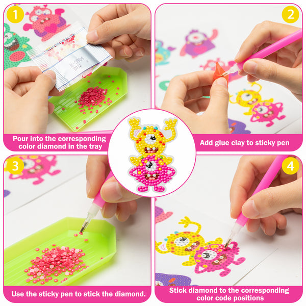 Interesting Handmade Gifts: There are cute and diverse monster patterns on this set of stickers. You can use the diamond drawing tool to paste the diamonds to the corresponding numbered positions. After putting all the diamonds on, you will be pleasantly surprised to find that you have got 12 vivid and shiny monster stickers.