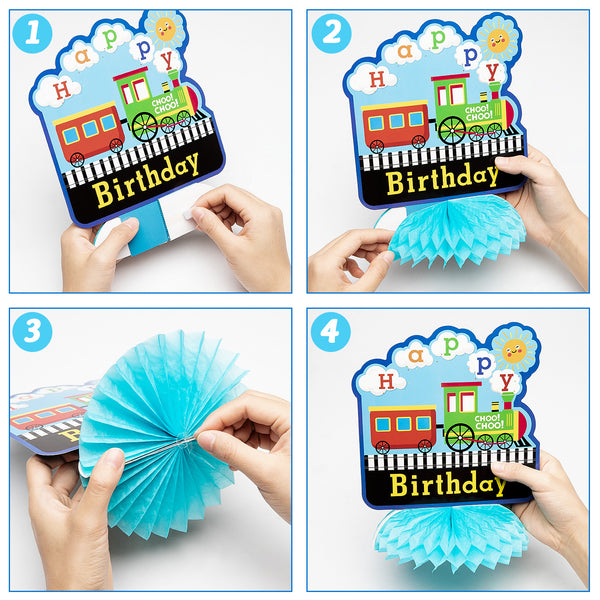 Package Content: Comes with 6 pieces railway train crossing themed honeycomb balls, 6 pieces table toppers and 3 sheets of glue points. These are enough to hold a party, and if you want any other kind of decoration, you can go to our home page and buy them.