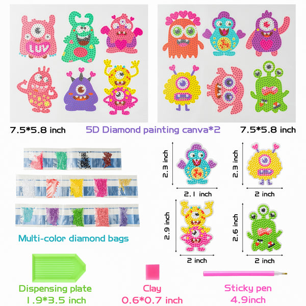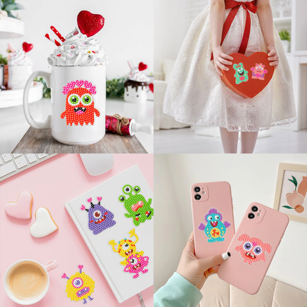 - Valentine's Day Crafts Gift: Designed with cute and various monster patterns, you can use the diamond painting tools to paste the diamonds to their corresponding numbered positions. You will be surprised to get 12 pcs vivid and shiny monsters stickers to decorate your surroundings, or give them as a craft gift to your loved ones.