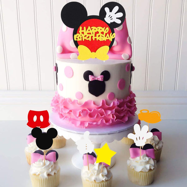 CLASSIC MICKEY DESIGN: The black, yellow and red are the main colors which are bright and colorful. A mix of 1pc cake topper and 24pcs cupcake toppers, would give you a unique Mickey theme party.