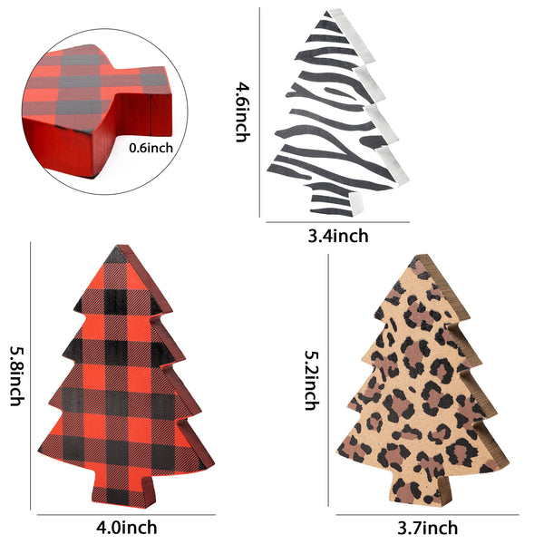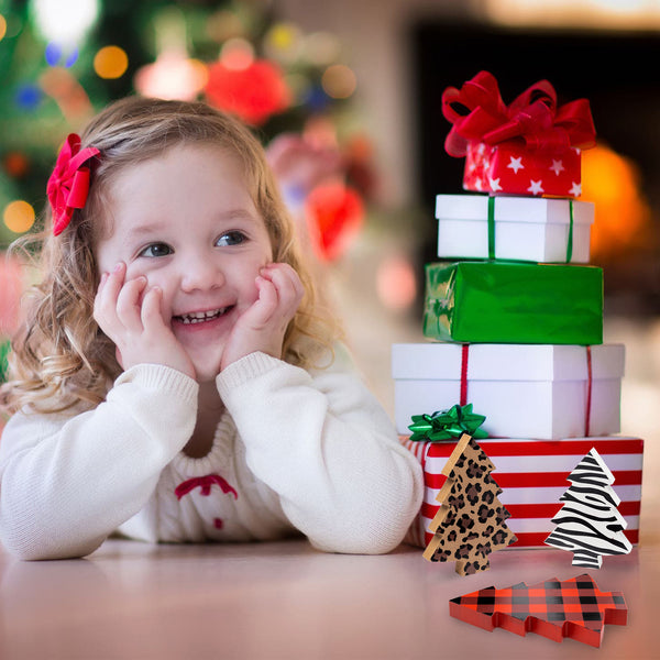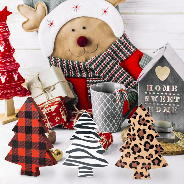 Adorable Christmas Decorations : This set includes 3 packs of Xmas tree shaped table signs in different patterns and colors - Buffalo Plaid in Red/ Leopard Print in Brown/ Zebra Print in B&W. Adequate quantity and beautiful colors will enhance the festival atmosphere and satisfy your decorative requirements for Christmas.