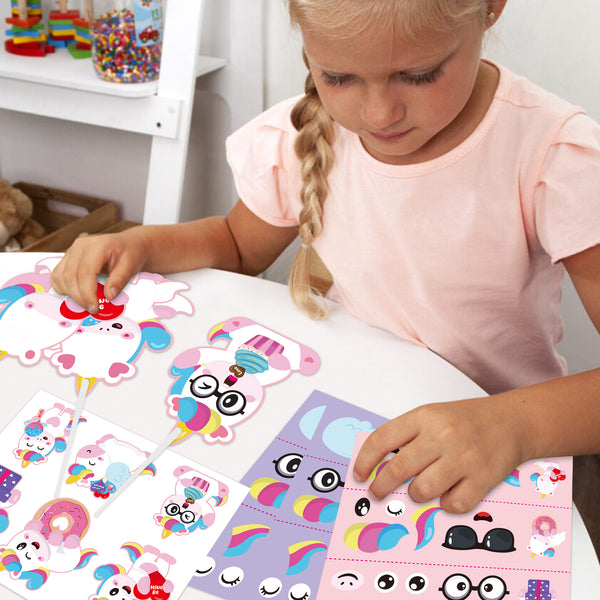 OSNIE 30 Packs Valentine’s Day Unicorn Make a Face Stickers Ornament Craft Kit for Kids Mix and Match DIY Make Your Own Unicorn Dessert Ornament Hanging Decoration Classroom Game Handcraft Supplies