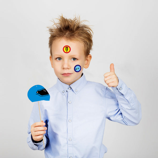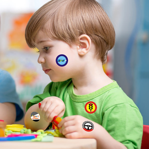 Package Content: 30 Pack Race Car theme table toppers in 10 different shapes, 2 sheets (40 pcs) Racecar stickers, 40 pcs wooden stick and 3 sheets (60 pcs) transparent glue point for sticking.