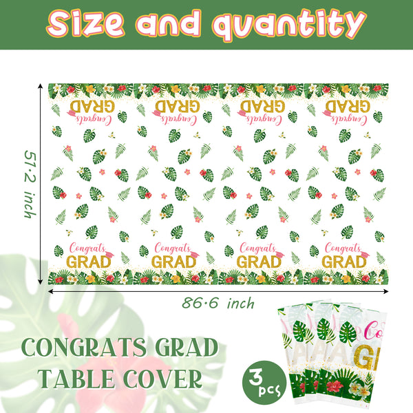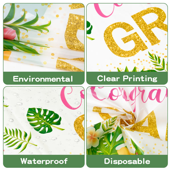 Eye-catching Hawaii Design: Add a touch of Hawaiian spirit to your graduation party with our Hawaii-themed tablecloths. The colorful design features various adorable patterns and "Aloha GRAD" lettering, making your celebration more special and memorable.