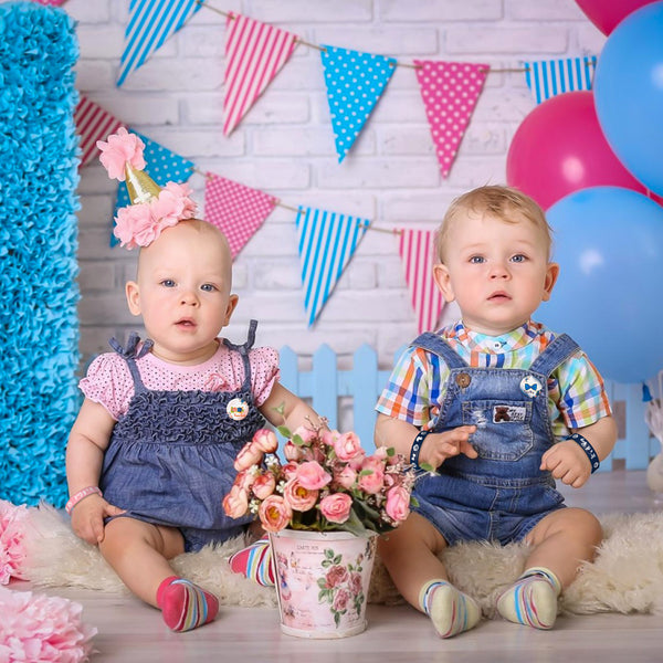 It's A Boy/Girl? : This set is printed with a very nice navy blue and pink flower pattern and is perfect for everyone going to a gender reveal party to choose a team of girls or boys and play. Add more fun memories to your family and friends.