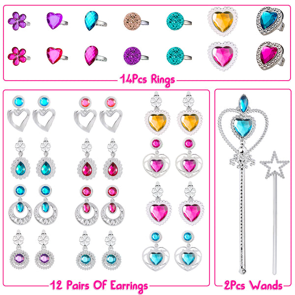 PRINCESS TOYS- Do you want your daughter to be like a princess? You can use this suit to dress your daughter as beautiful as a princess. Our princess pretend jewelry toy will realize your little girl princess’s dream and shine in the party.