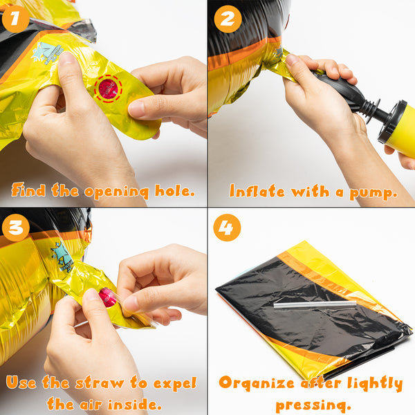 All In One Kit: This package offers 8 pcs giant foil balloons, including 1 x number 1 balloon, 1 x jumbo bumblebee balloon, 1 x sunflower balloon, 1 x flower balloon, 2 x round-shaped happy birthday balloons and 2 x star-shaped balloons in different colors. Also we provide straws to inflate.