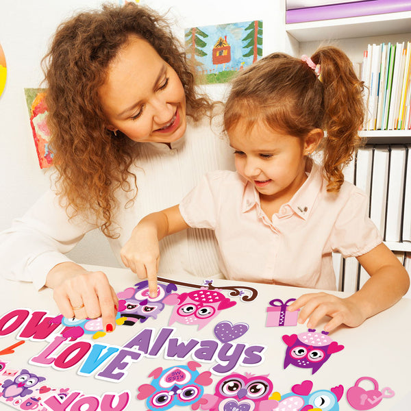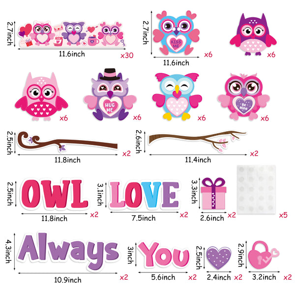 Value Pack - You will get a total of 84 cutouts: 36 colorful owl cutouts in 6 different styles, 30 owl bulletin board border decorative strip, and 18 text cutouts (Owl Always Love You) with adhesive dots. A sufficient number of cards will allow you to decorate your room, classroom door, bulletin board and every other place you want to decorate.