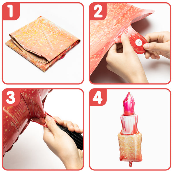 WHAT YOU’LL GET - "SPA" letter balloons banner, 3 pcs 18"x18" heart-shaped foil balloons, 2 pcs 48"x18" lipstick shaped foil balloons, 1 pc 29"x23" red kissy lips foil balloon. Also we provide straws to inflate.