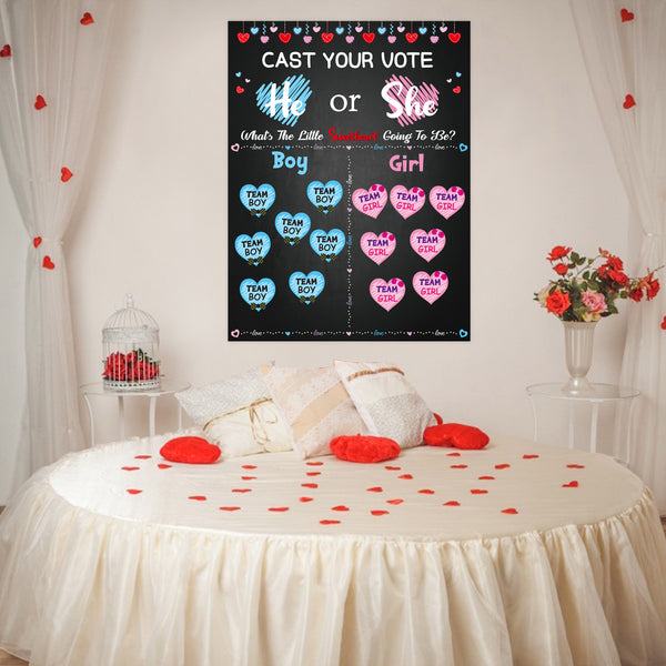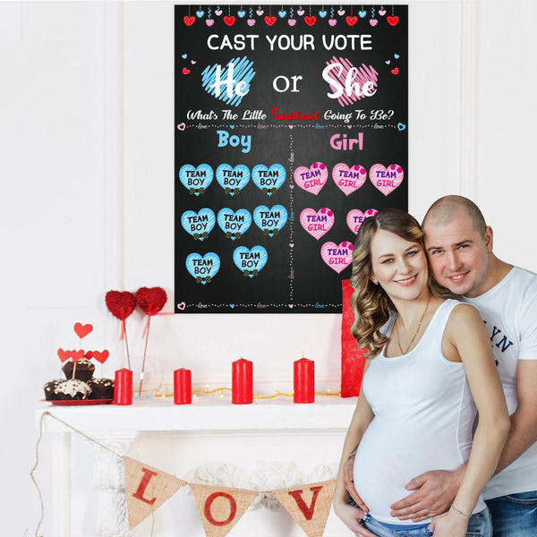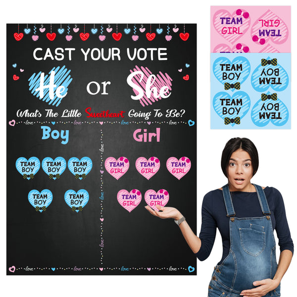 Suitable Size: The gender reveal voting poster measures 27 x 20.7 inches. The size of sticker sheet is approx 5.1 x 5.2 inches (Four small stickers are printed on each sticker).