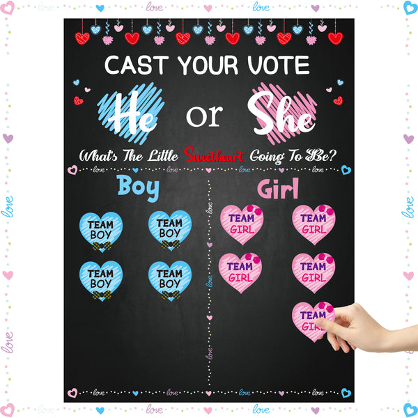 OSNIE Little Sweetheart Gender Reveal Party Games Valentines Day Cast Your Vote He or She Gender Reveal Poster with Team Boy Team Girl Stickers What Will Our Little Sweetheart Be Baby Shower Supplies