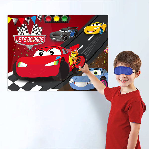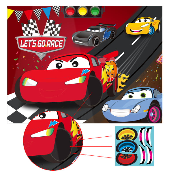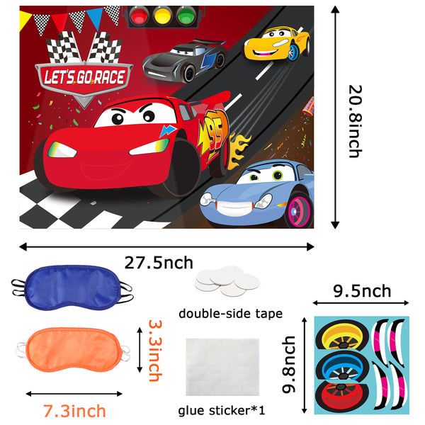 OSNIE Race Car Party Games, Pin the Wheel and Smile on the Car, Large Poster with Blindfolds and Stickers, Let’s Go Racing Themed Party Decorations Family Game Activities for Kids Birthday Baby Shower